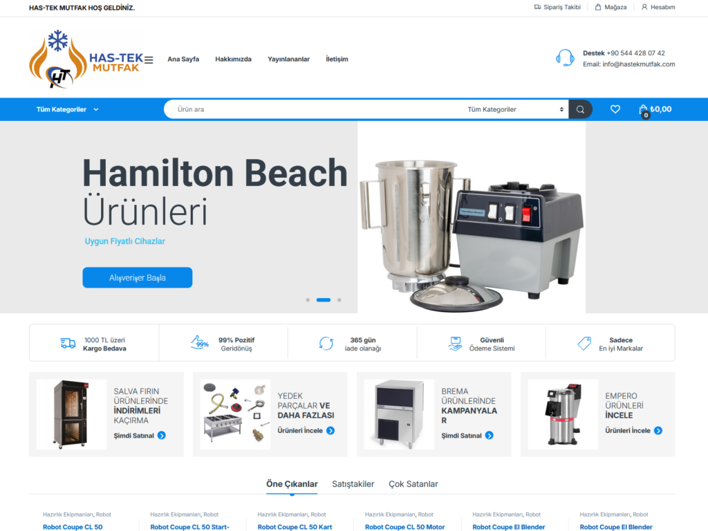 Has-Tek Mutfak online satış platformu kuruldu sepet, istek listesi, güncel tema ile birlikte kuruldu. Kredi kartı tek çekim ve taksitli çekim işlemleri kuruldu.